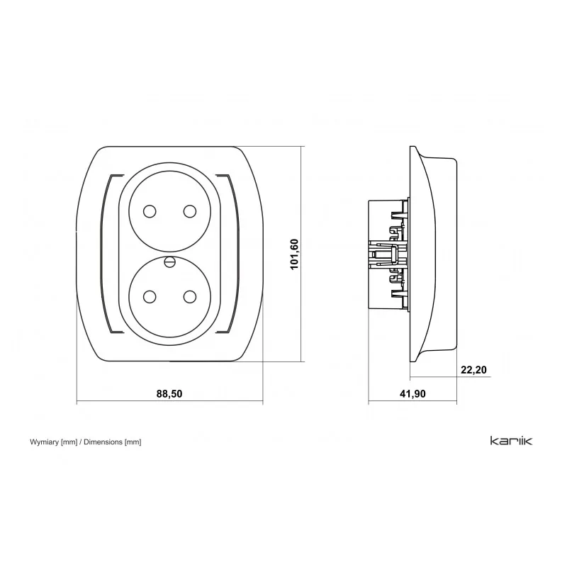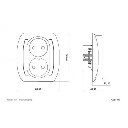 Podwójne gniazdo elektryczne w kolorze srebrnym przeznaczone jest do montażu podtynkowego. Dzięki prostej konstrukcji zacisków z gwintami mechanizm gniazda podwójnego GP-2P z łatwością zamontujesz w puszce. Gniazdo elektryczne KARLIK nie posiada uziemienia, ale posiada przesłony torów prądowych dla zwiększenia bezpieczeństwa. Gniazdo posiada klasę szczelności IP20 i wykonane jest z wysokiej jakości materiałów. Gniazda z serii TREND dostępne są w różnych wersjach kolorystycznych.