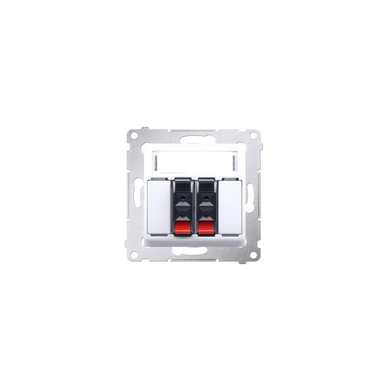 Gniazdo głośnikowe 2-krotne z polem opisowym (moduł). Przekrój przewodów dla wejścia i wyjścia 2,5 mm2; biały
