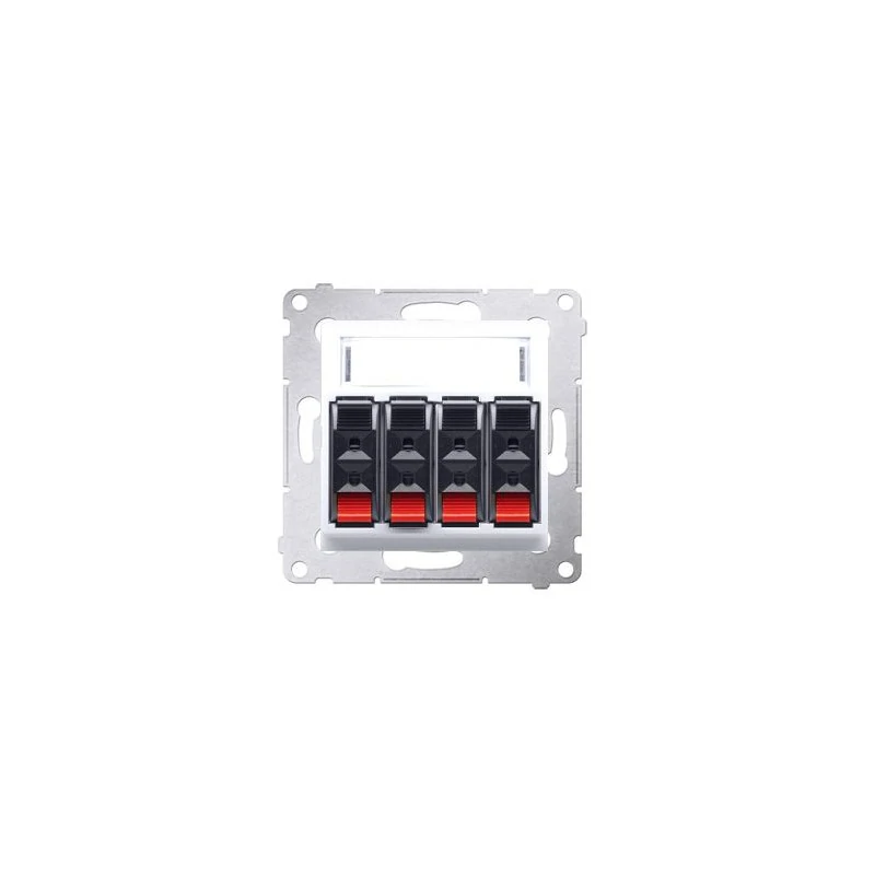 Gniazdo głośnikowe 4-krotne z polem opisowym (moduł). Przekrój przewodów dla wejścia i wyjścia 2,5 mm2; biały