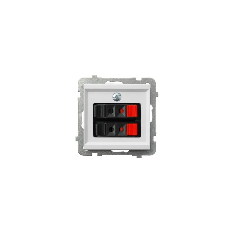 Gniazdo głośnikowe podwójne Sonata Ospel, przyłączalność przewodów 0.75mm2 w kolorze białym.