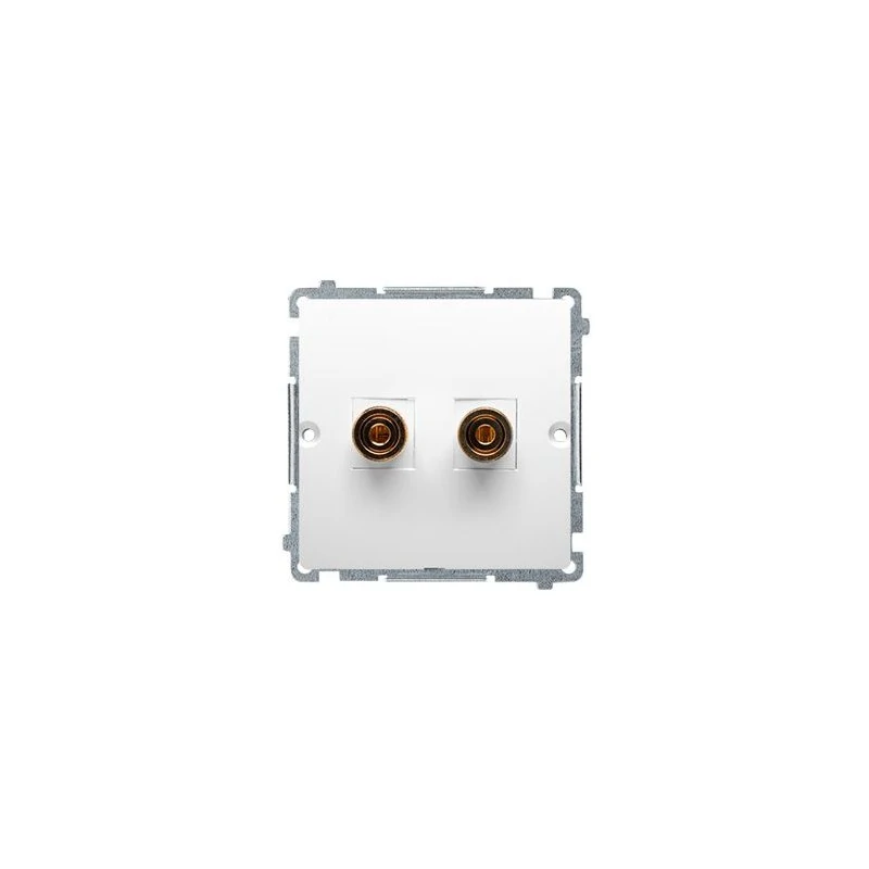 Gniazdo głośnikowe pojedyncze -1 kolumna głośnikowa (moduł). Przekrój przew. dla wyjścia 6 mm2. Mocowanie na wkręty do puszki; biały