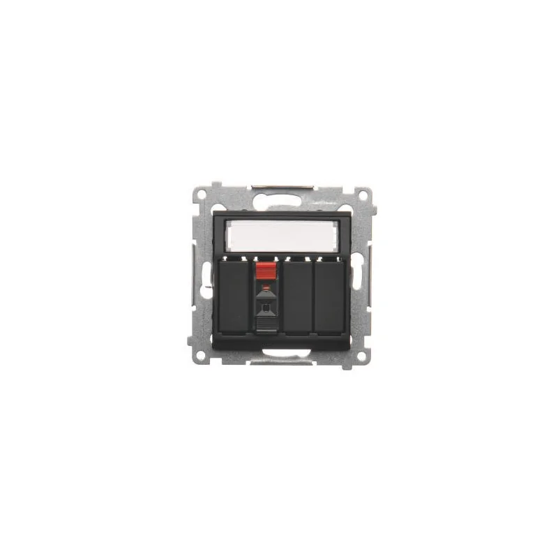 Gniazdo głośnikowe 1-krotne z polem opisowym (moduł). Przekrój przewodów dla wejścia i wyjścia 2,5 mm2; czarny mat