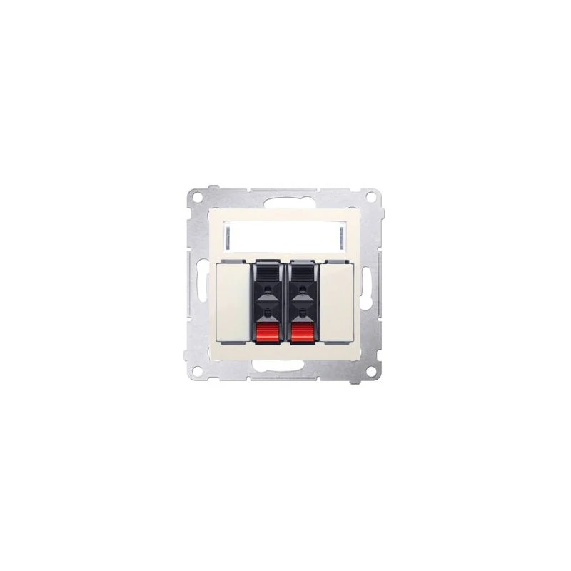 Gniazdo głośnikowe 2-krotne z polem opisowym (moduł). Przekrój przewodów dla wejścia i wyjścia 2,5 mm2; krem