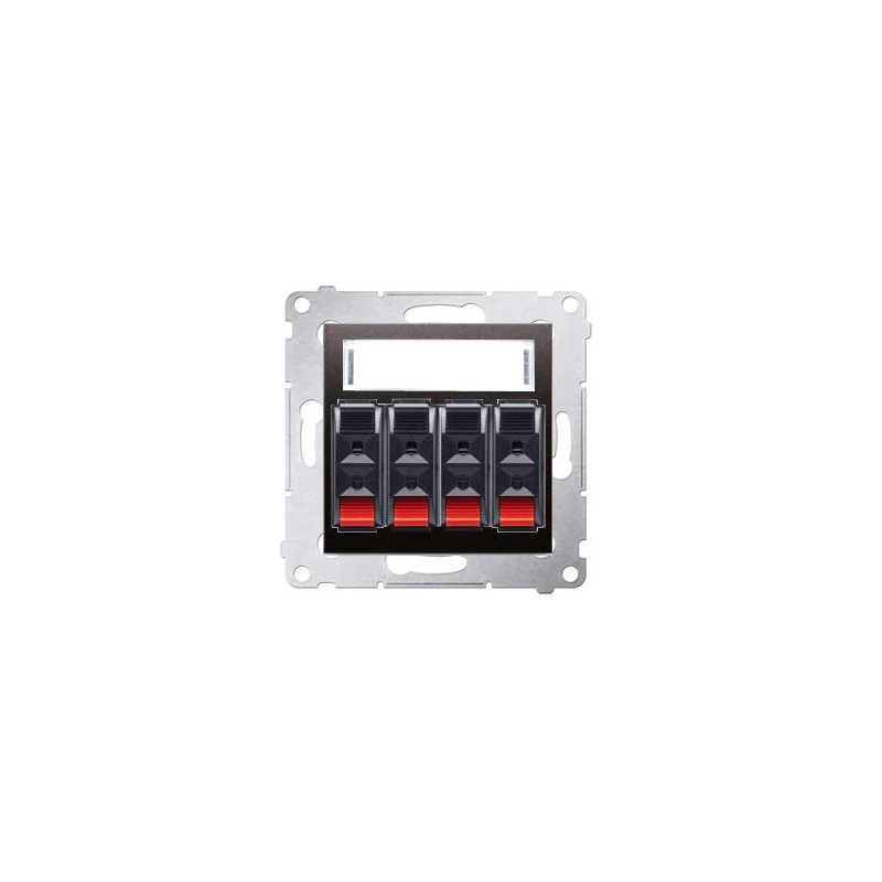 Gniazdo głośnikowe 4-krotne z polem opisowym (moduł). Przekrój przewodów dla wejścia i wyjścia 2,5 mm2; antracyt