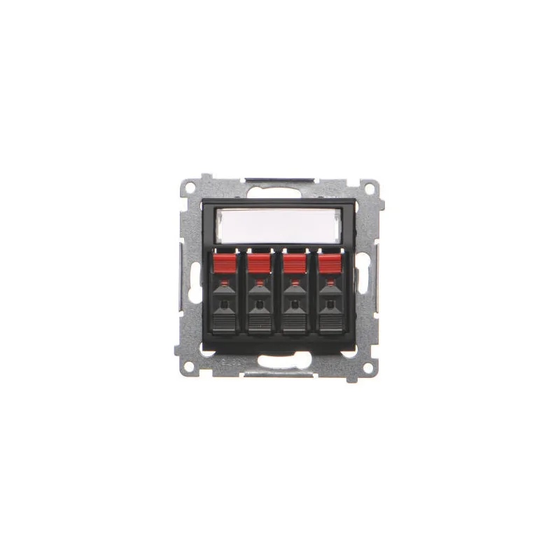 Gniazdo głośnikowe 4-krotne z polem opisowym (moduł). Przekrój przewodów dla wejścia i wyjścia 2,5 mm2; czarny mat