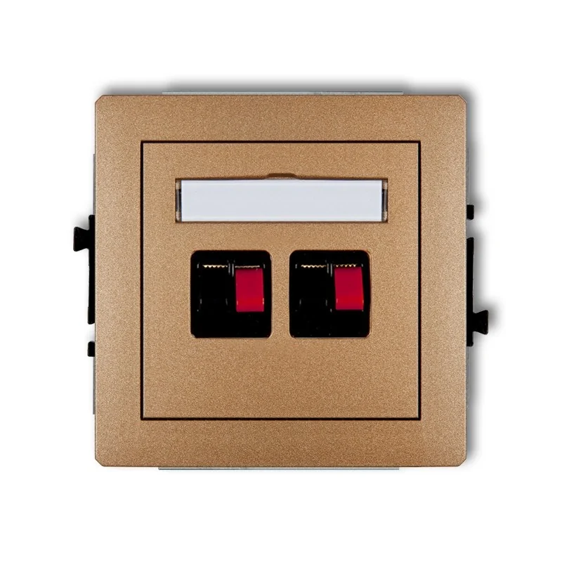 Gniazdo głośnikowe podwójne 8DGG-2 serii DECO firmy KARLIK to gniazdo multimedialne głośnikowe podwójne. Kontakt wyposażony jest w dwa wejścia 2,5mm2. Gniazdo głośnikowe zostało wyprodukowane z myślą o przesyłaniu sygnału analogowego (dźwiękowego) z zestawów audio/wideo do głośników lub innych tego typu urządzeń w całym naszym pomieszczeniu. Osprzęt 8DGG-2 przeznaczony do montażu podtynkowego cechują się łatwością instalacji - jest chętnie wybierany przez instalatorów. Gniazdo ścienne do głośników to idealny element w pokoju dziennym lub relaksacyjnym, w pokoju nastolatka, w pokoju z telewizorem czy kinem domowym lub wszędzie tam, gdzie istnieje potrzeba słuchania dźwięku lub muzyki na jak najwyższym poziomie, za pomocą głośników.