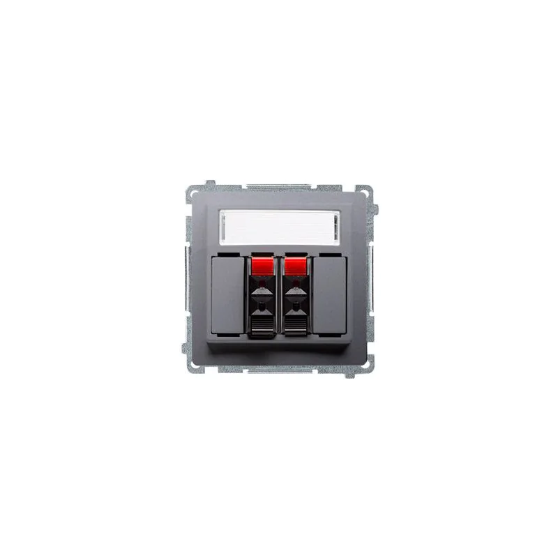 Gniazdo głośnikowe 2-krotne z polem opisowym (moduł). Przekrój przew.dla wejścia i wyjścia 2,5 mm2. Mocowanie na łapki i wkręty; stal inox