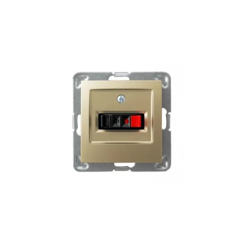 Gniazdo głośnikowe z serii IMPRESJA firmy OSPEL koloru złotego jest przeznaczonego do montażu podtynkowego. Gniazdo wymaga dokupienia ramki z serii IMPRESJA firmy OSPEL.