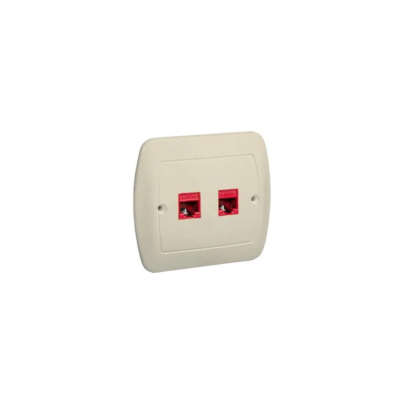 Gniazdo komputerowe RJ45 podwójne, kategoria 5e. Montaż do puszki na wkręty; beż
