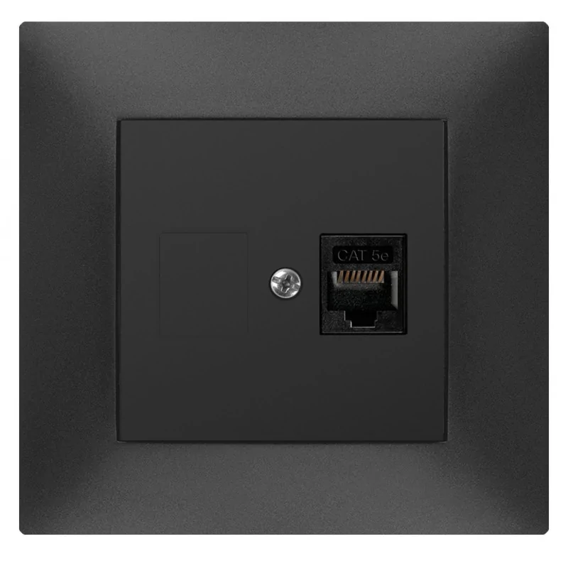 Grafitowe matowe gniazdo komputerowe RJ45 kat. 5e ekranowane 28DGK-1e DECO KARLIK