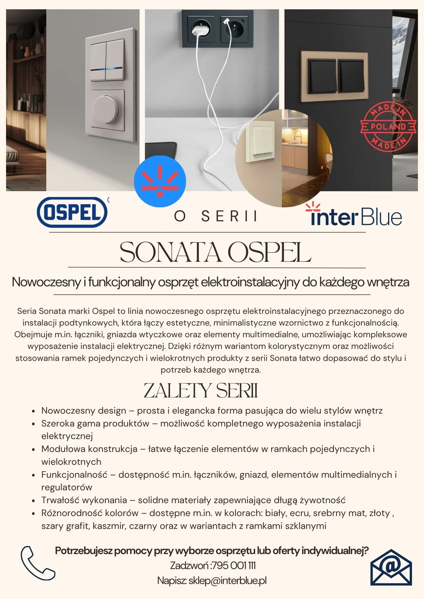 Moduł sprzedawany bez ramki. Do prawidłowego montażu należy osobno dokupić ramkę serii SONATA OSPEL.