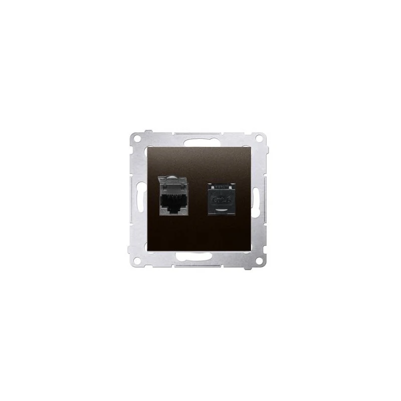 Gniazdo komputerowe podwójne RJ45 kategoria 6, z przesłoną przeciwkurzową (moduł); brąz mat