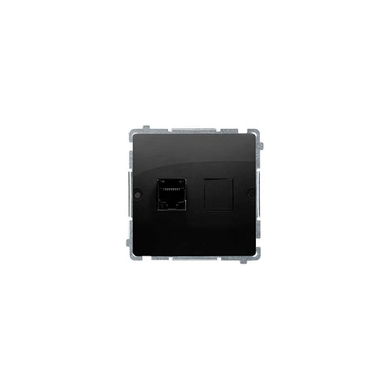 Gniazdo komputerowe RJ45 pojedyncze serii Simon Basic marki Kontakt-Simon jest kategorii 5e (moduł). Montaż gniazda na wkręty do puszki. Gniazdo komputerowe w kolorze czarny mat przeznaczone jest do montażu podtynkowego. Do gniazda należy dokupić standardową ramkę instalacyjną serii Simon Basic.