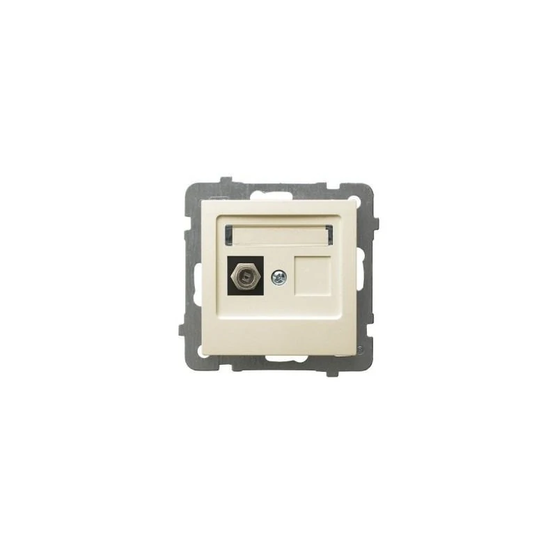 Gniazdo komputerowe RJ45 w kolorze ECRU typu F serii AS firmy OSPEL, przeznaczone do montażu podtynkowego. Gniazdo wymaga dokupienia ramki serii AS firmy OSPEL.