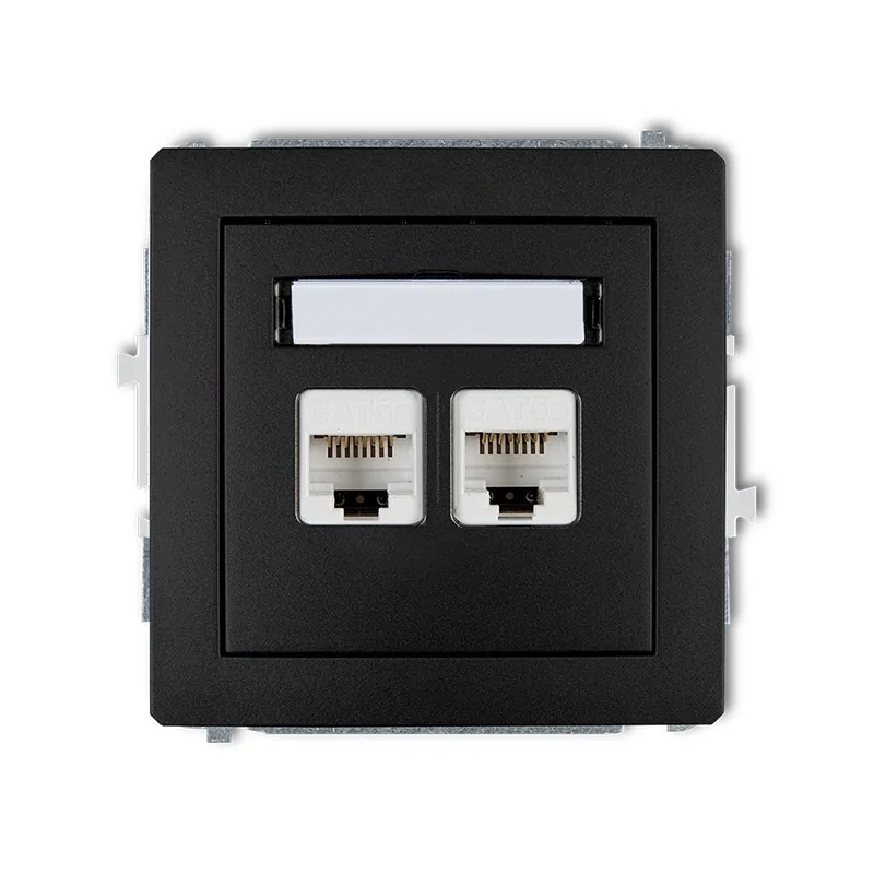 Podwójne gniazdo komputerowe RJ45 kat. 6e w kolorze czarnym serii DECO firmy KARLIK, przeznaczone do montażu podtynkowego. Gniazdo sprzedawane jest bez ramki w zestawie. W serii DECO dostępne są ramki w krotnościach 1-5 w różnych kolorach. W ofercie znajdują się również ramki wypełniające- niweluje szczelinę pomiędzy ramką standardową, a ścianą (opcja dodatkowa) oraz pośrednie w bogatej kolorystyce, co pozwala na stworzenie własnej kompozycji.
