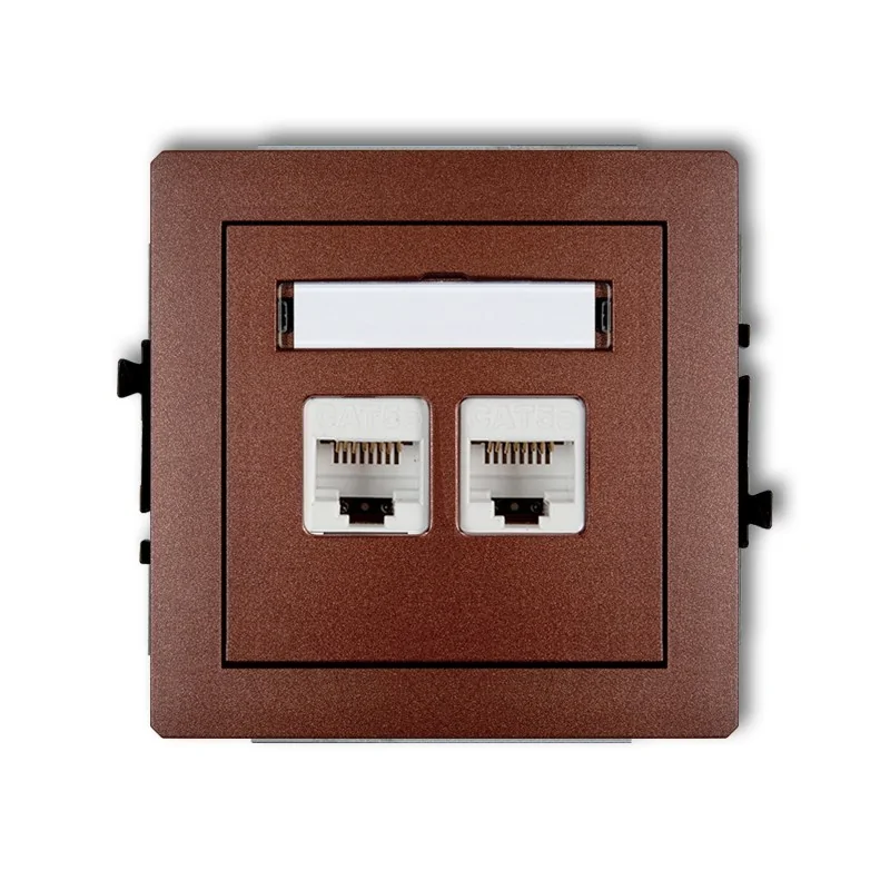 Brązowe gniazdo komputerowe podwójne podtynkowe