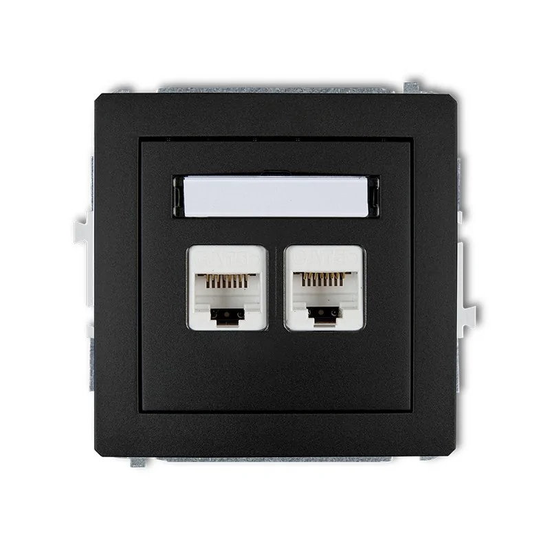 Gniazdo podwójne komputerowe 2xRJ45 czarny mat podtynkowe kat.6 8-stykowy srebrny metalik DECO 12DGK-6 KARLIK