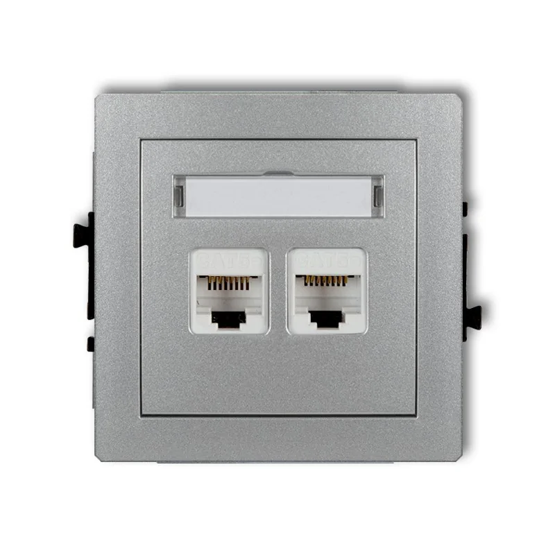 Podwójne gniazdo komputerowe RJ45 kat. 6e w kolorze srebrnym serii DECO firmy KARLIK, przeznaczone do montażu podtynkowego. Gniazdo sprzedawane jest bez ramki w zestawie. W serii DECO dostępne są ramki w krotnościach 1-5 w różnych kolorach. W ofercie znajdują się również ramki wypełniające- niweluje szczelinę pomiędzy ramką standardową, a ścianą (opcja dodatkowa) oraz pośrednie w bogatej kolorystyce, co pozwala na stworzenie własnej kompozycji.
