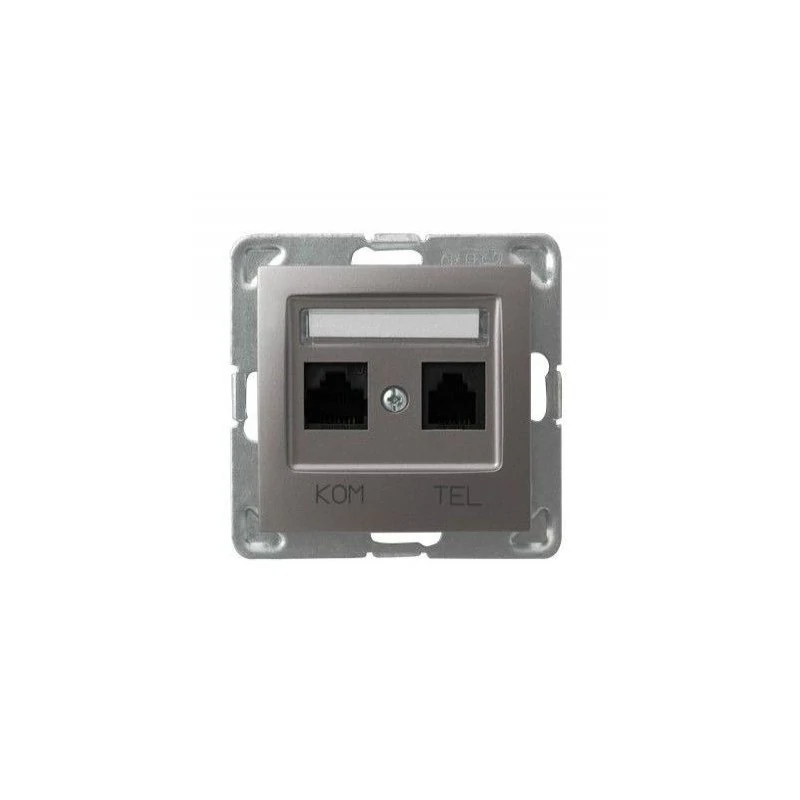 Tytanowe gniazdo komputerowo-telefoniczne RJ11-RJ45 serii IMPRESJA firmy OSPEL, sposób montażu: podtynkowy. Gniazdo wymaga dokupienia ramki serii IMPRESJA firmy OSPEL.