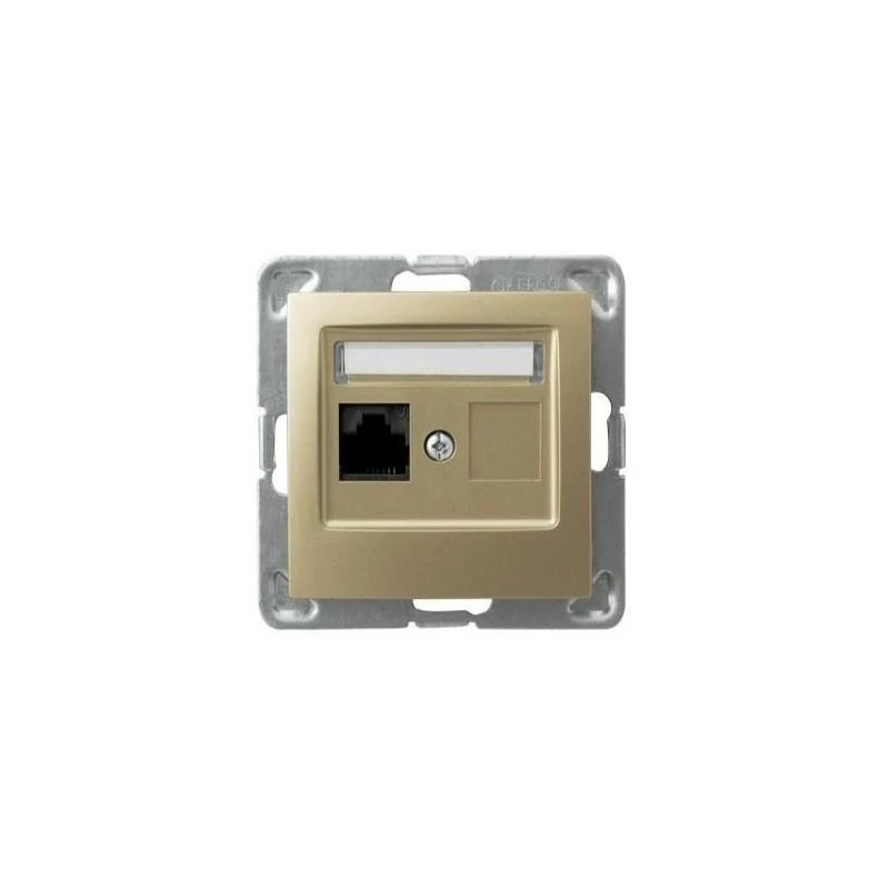 Gniazdo komputerowe kat. 6 MMC w kolorze złotym serii IMPRESJA firmy OSPEL, sposób montażu: podtynkowy. Gniazdo wymaga dokupienia ramki serii IMPRESJA firmy OSPEL.