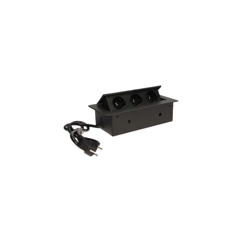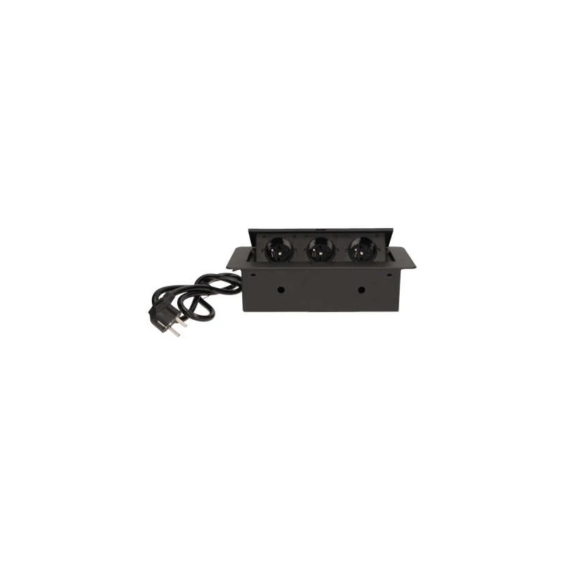 Czarne gniazdo meblowe chowane w blacie z 3m przewodem 3x2P+Z OR-AE-1337/B/3m ORNO