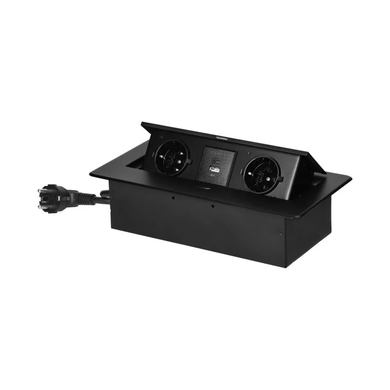 Czarne gniazdo meblowe schuko wpuszczane w blat z ładowarką USB i przewodem 1,5m 2x2P+Z 2xUSB OR-GM-9035(GS)/B ORNO