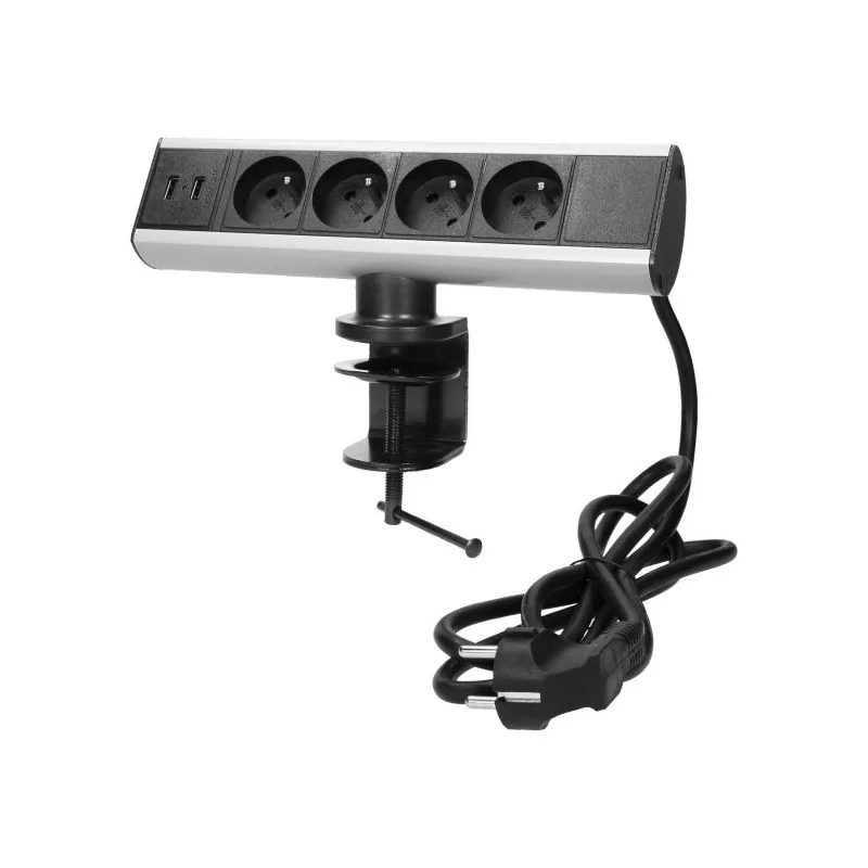 FS-8 Poczwórne gniazdo meblowe na blat z ładowarką USB z uchwytem montażowym 4x2P+Z 2xUSB 1,8m ORNO