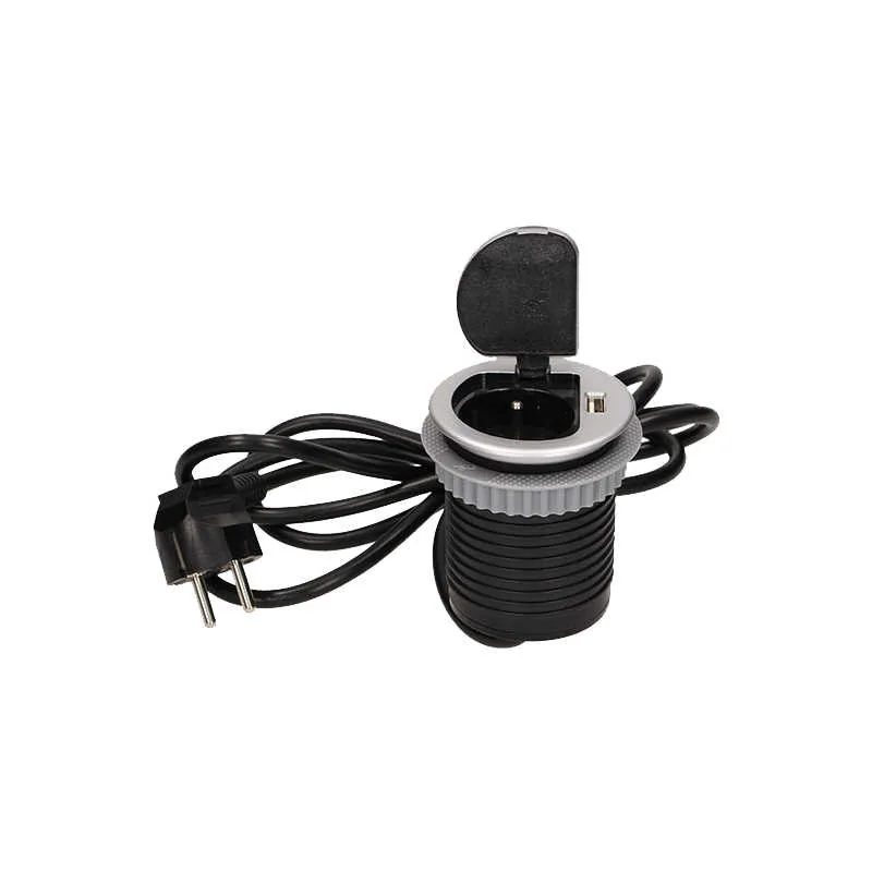 Gniazdo meblowe wsuwane w blat pojedyncze w wersji schuko z USB i przewodem