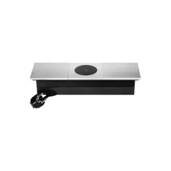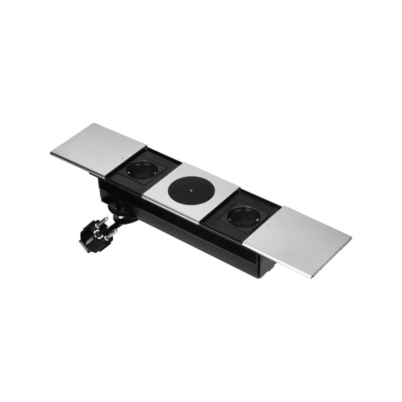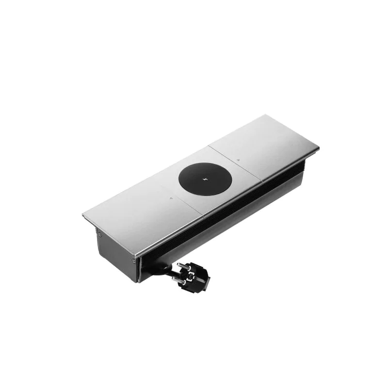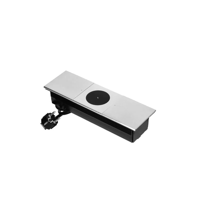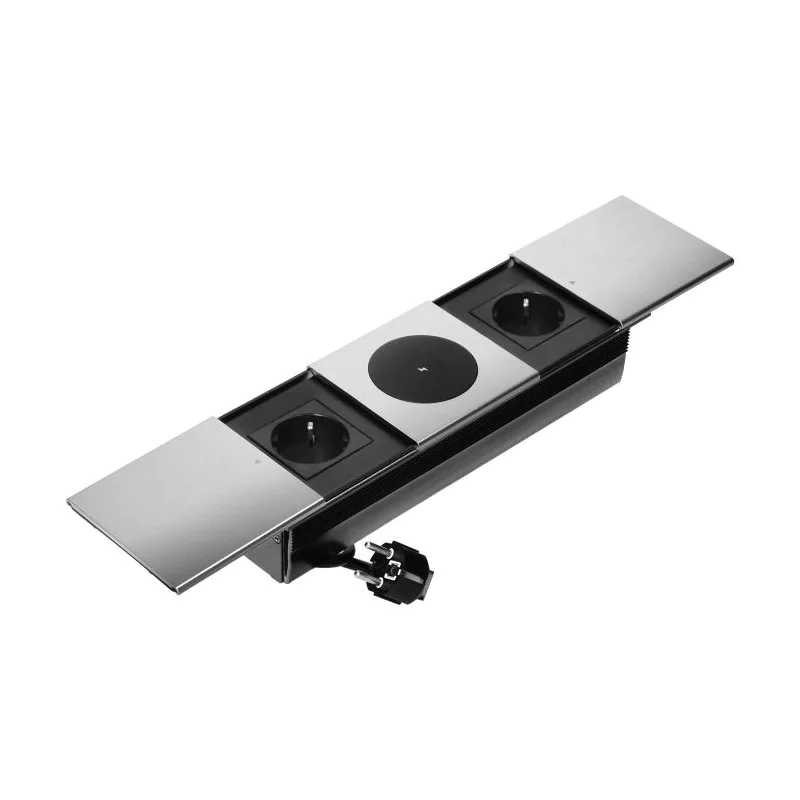 ✔️Smukły nowoczesny srebrny designGniazdo wpuszczane w blat z przesuwną pokrywą i ładowarką bezprzewodową Schuko