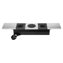 Prezentowane gniazdo posiada prostokątny kształt o wymiarach 258x86 mm. Grubość rantu wynosi zaledwie 7 mm, dzięki czemu dyskretnie można wbudować np. w biurko lub kuchenny blat, a przesuwna klapka estetycznie zamknie urządzenie.