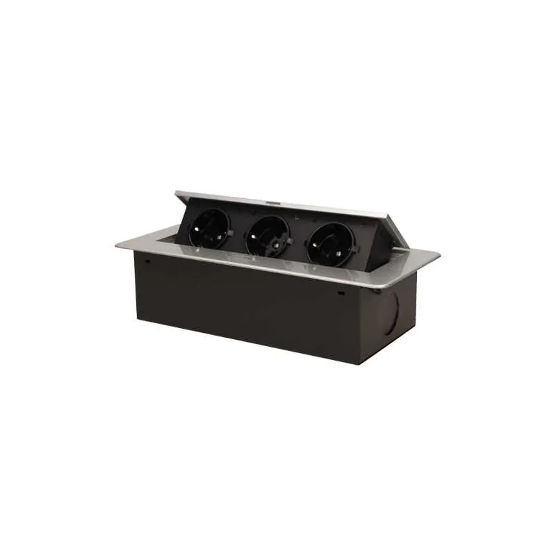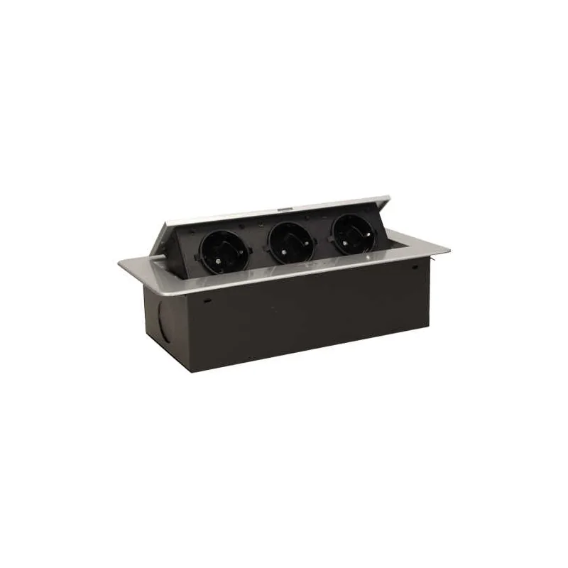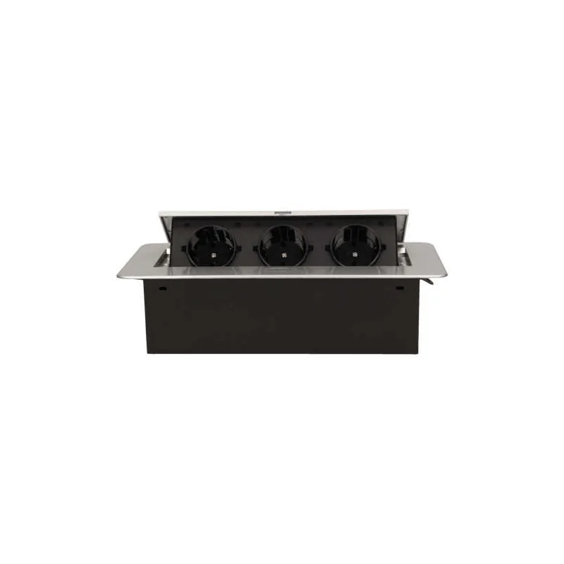 Gniazdo blatowe wpuszczane z płaskim frezowanym rantem schuko 3x2P+Z srebrne OR-AE-1336/G(GS) ORNO
