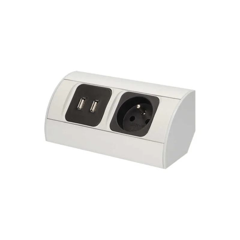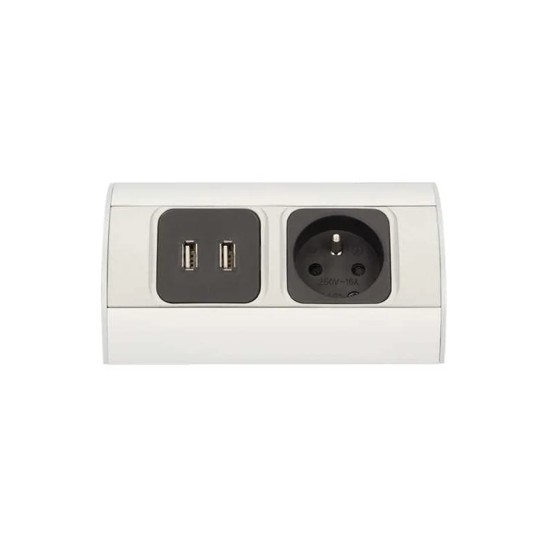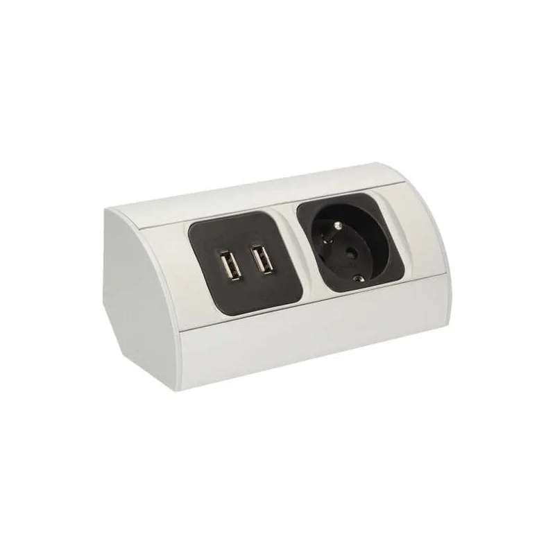 Podszafkowe gniazdo meblowe z uziemieniem i dwoma wejściami USB