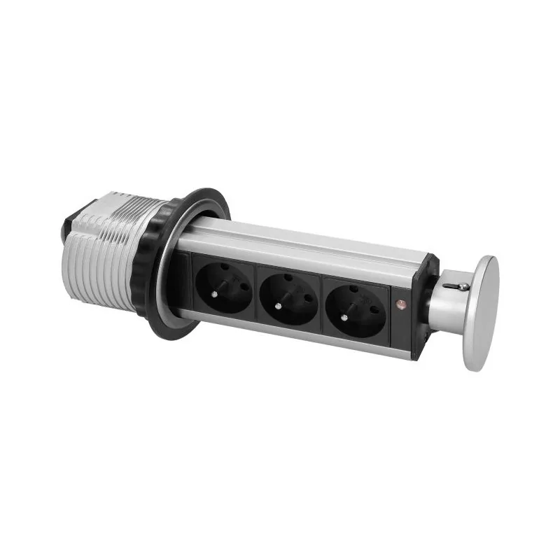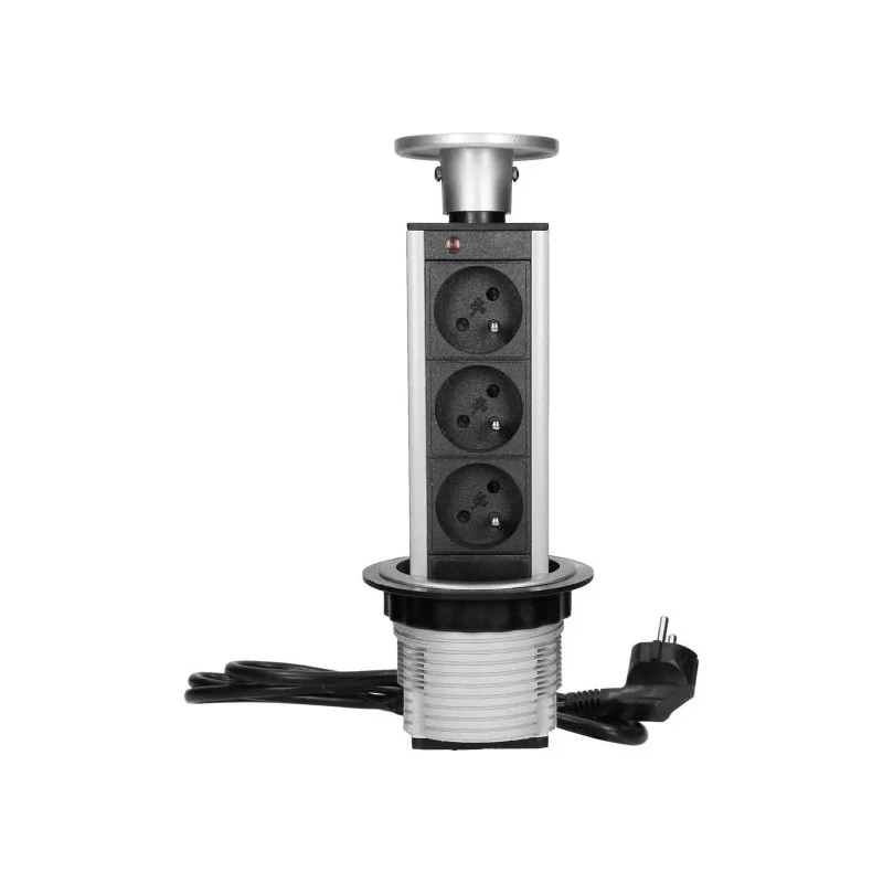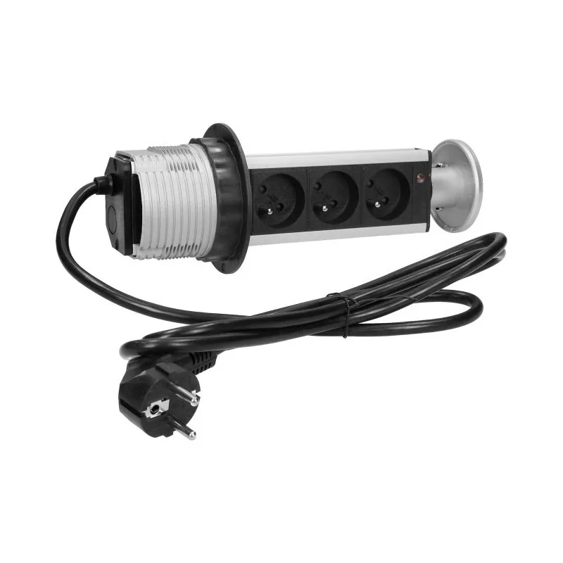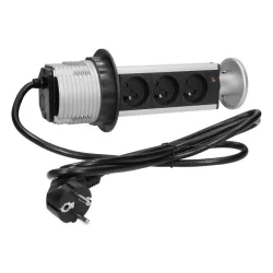 Gniazdo meblowe potrójne srebrne wysuwane z blatu z przewodem 1,8m 3x2P+Z FS-18 ORNO