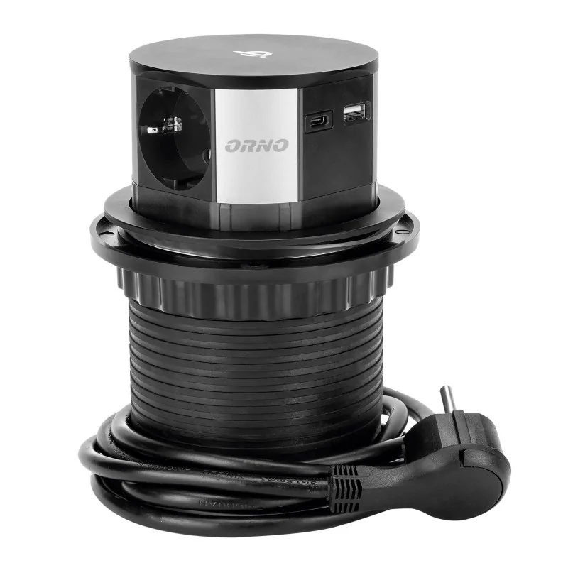 Gniazdo meblowe schuko wysuwane z blatu z ładowarką indukcyjną, ładowarką USB i przewodem OR-GM-9017/GS ORNO