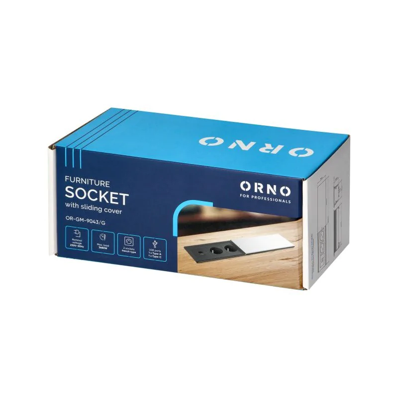 Gniazdo meblowe srebrne płaskie z przesuwaną pokrywą do blatu z USB C i A OR-GM-9043/G ORNO