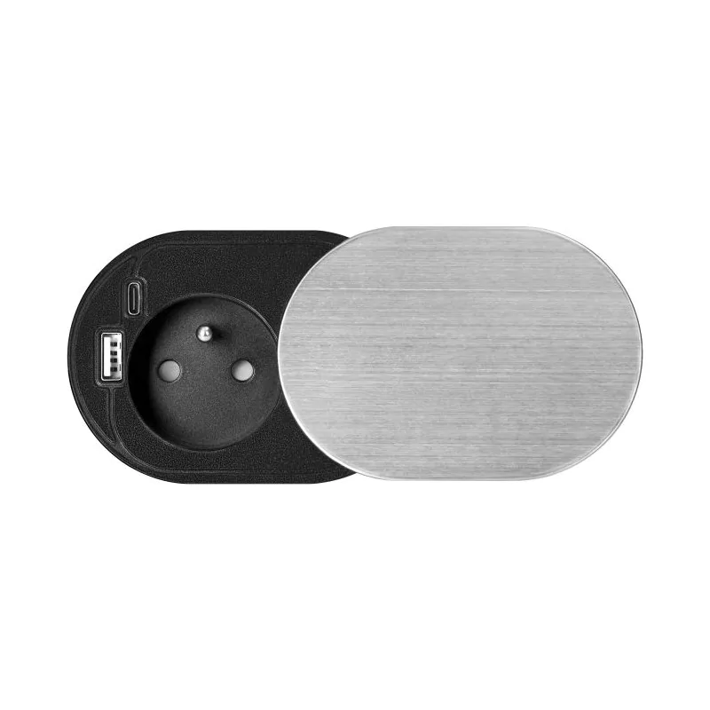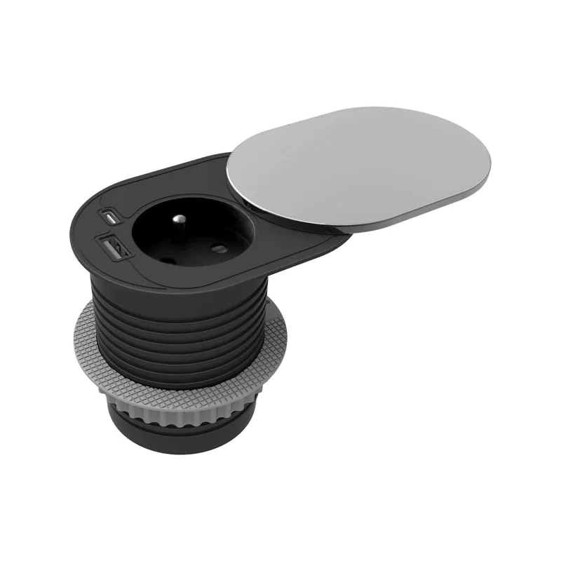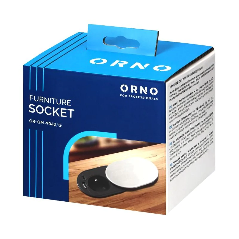 Gniazdo meblowe srebrne z pokrywą do blatu z ładowarką i przewodem OR-GM-9042/G ORNO