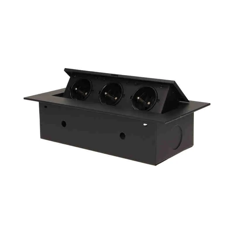 Gniazdo meblowe wpuszczane w blat płaskie potrójne czarne OR-AE-1371/B ORNO