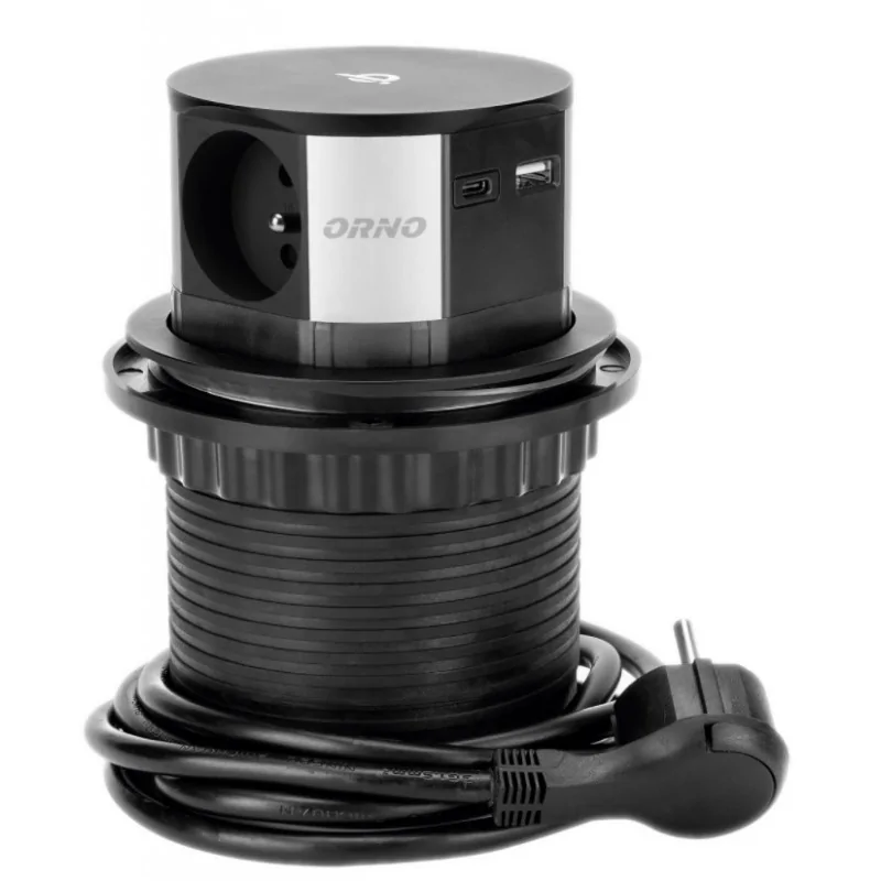 Gniazdo meblowe wysuwane z blatu z ładowarką indukcyjną, ładowarką USB i przewodem OR-GM-9017/B ORNO
