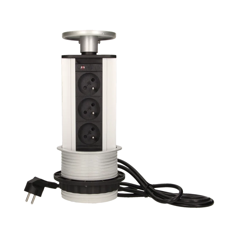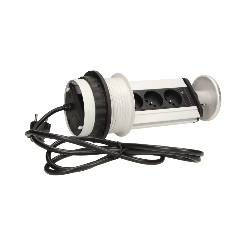 Okrągłe gniazdo meblowe z trzema gniazdami wysuwane z blatu