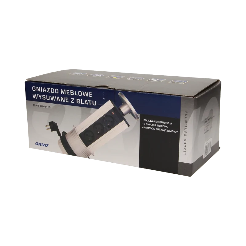 Gniazdo meblowe aluminiowe OR-AE-1351 firmy ORNO wyposażone