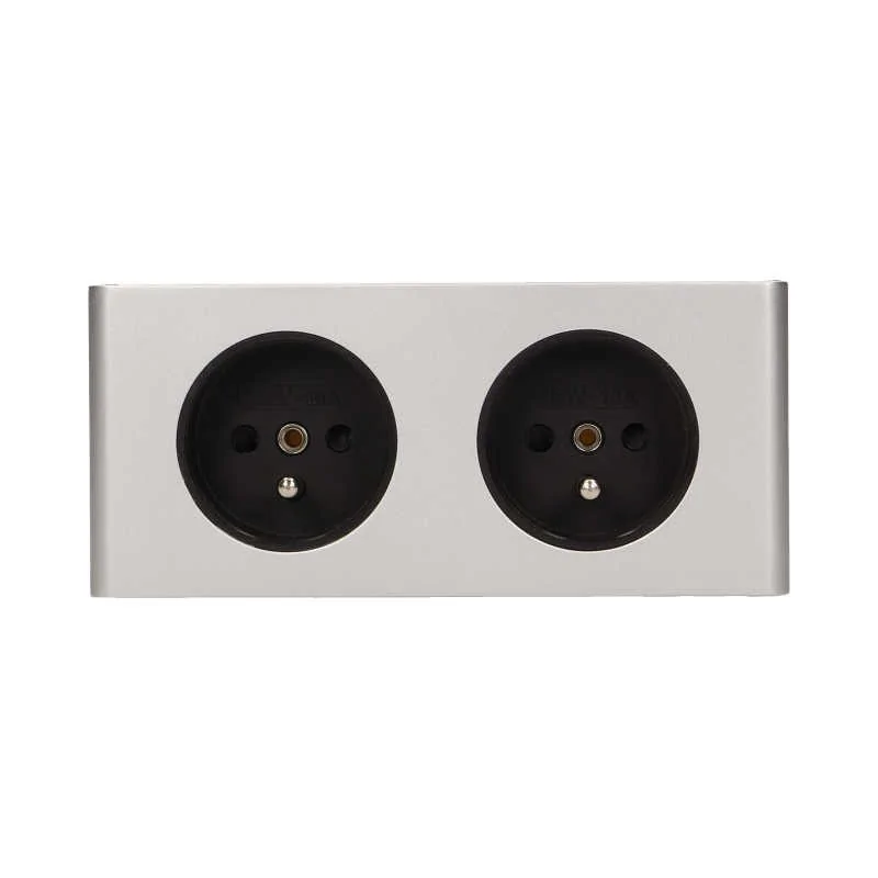 Gniazdo podwójne podszafkowe bez wyłącznika 2x2P+Z srebrne OR-AE-1383 ORNO