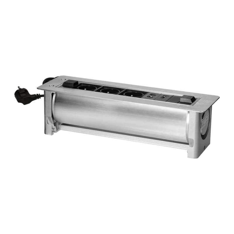 Gniazdo wpuszczane w blat z płaskim frezowanym rantem + elektryczne otwieranie 3x2P+Z 2xNET 1xHDMI ORNO