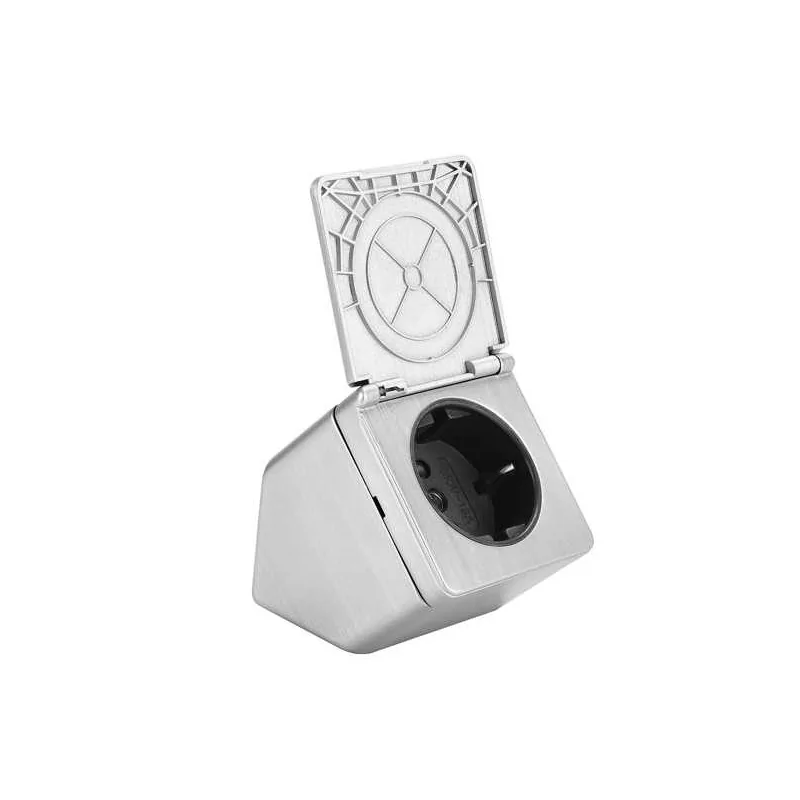 Hermetyczne gniazdo meblowe podszafkowe OR-GM-9012/G marki ORNO posiada klapkę, która chroni przed zalaniami wodą. Podwyższony stopień ochrony sprawia, że prezentowany model gniazda może być stosowany w pomieszczeniach o zwiększonym ryzyku wilgotności tak jak łazienka. Maksymalne obciążenie gniazda podszafkowego może wynosić do 3680W. Produkt wyposażony jest w przewód o długości 0,5m i jest w kolorze srebrnym. Pojedyncze gniazdko typu E idealnie nada się do montażu pod szafkami, w szafkach czy witrynach.