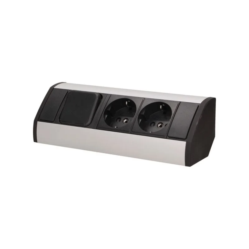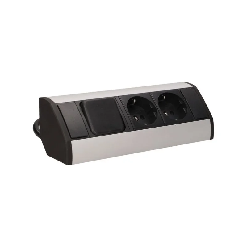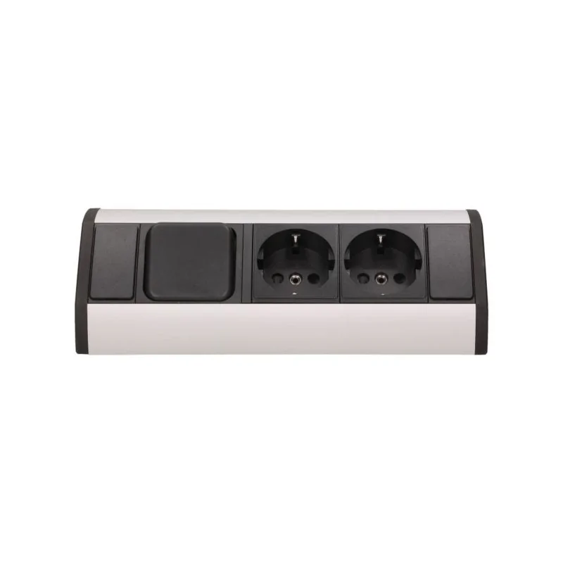 OR-GM-9002/B-G(GS) Gniazdo meblowe podszafkowe czarno-srebrne z wyłącznikiem Schuko 2x2P+Z OR-GM-9002/B-G(GS) ORNO