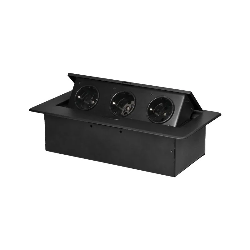 OR-GM-9032(GS)/B Czarne gniazdo meblowe wpuszczane w blat 3x2P+Z SCHUKO z płaskim frezowanym rantem ORNO