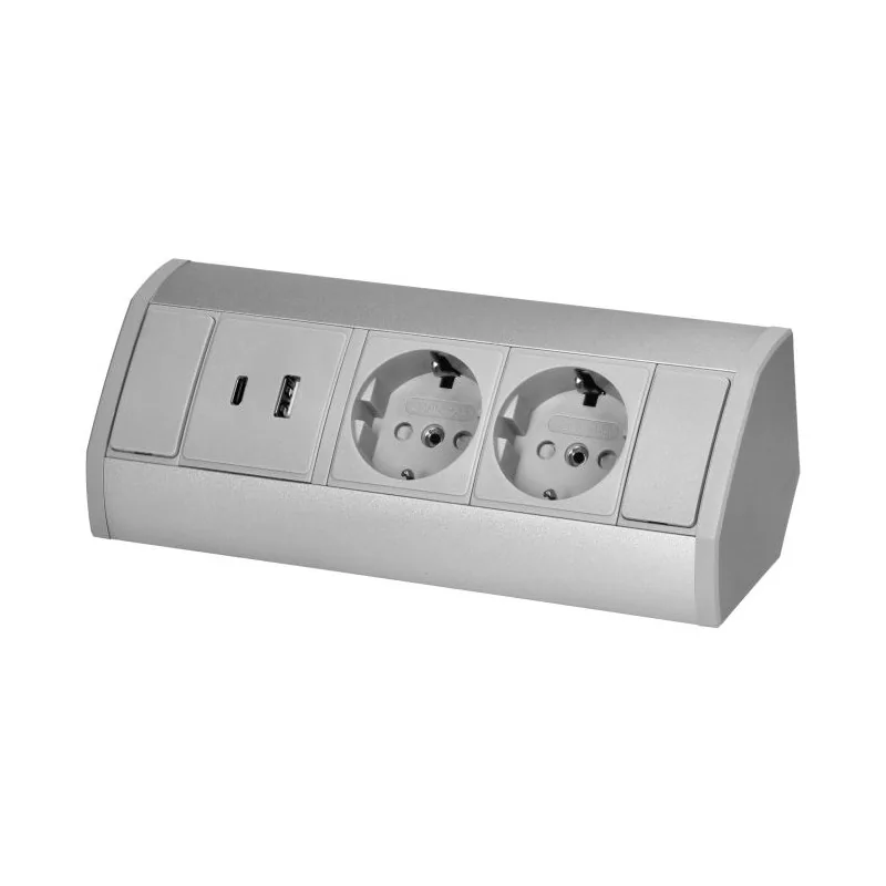 OR-GM-9039(GS)/G Gniazdo meblowe podszafkowe szaro-srebrne schuko 2x2P+Z+USB A+C ORNO