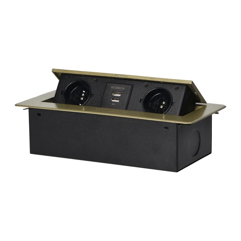 Płaskie gniazdo wpuszczane w blat z ładowarką USB mosiądz 2x2p+Z OR-AE-13109/BR ORNO