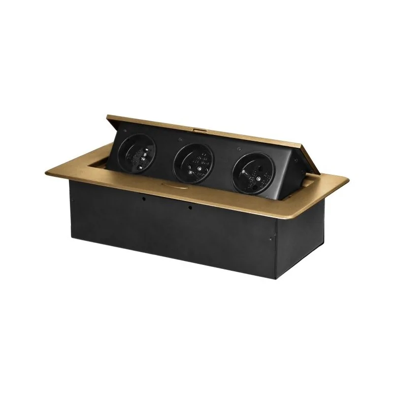 Złote gniazdo meblowe wpuszczane w blat 3x2P+Z z płaskim frezowanym rantem OR-GM-9032/C ORNO