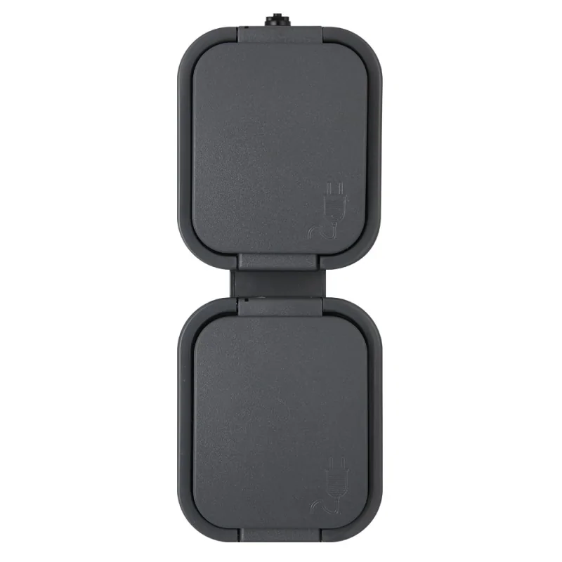 Gniazdo bryzgoszczelne podwójne pionowe z klapką szare