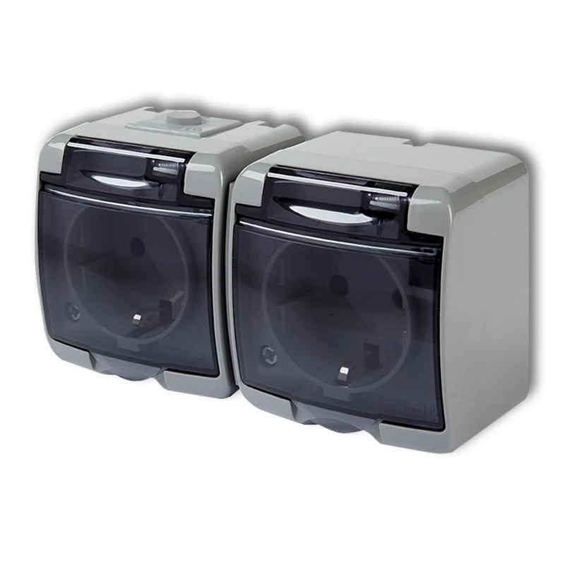 10GHE-2sdp Gniazdo podwójne szare natynkowe schuko z przesłonami IP54 JUNIOR KARLIK